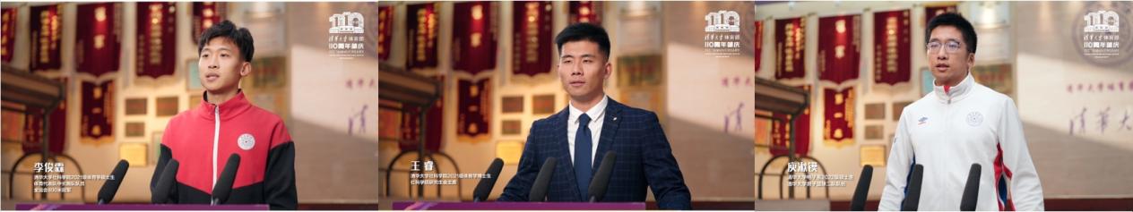 清华大学社科学院2021级体育学硕士生、全运会800米冠军李俊霖,清华大学社科学院2021级体育学博士生、社科学院研会主席王睿,清华大学电子系2022级硕士生、清华大学男篮二队队长庾湫镆作为学生代表发言。他们表示,清华尊重每一位学生的体育梦想,让热爱体育的青年学子走向更广阔的青春舞台。