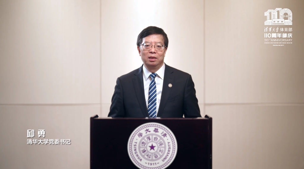 邱勇在题为《坚持体魄与人格并重,培养祖国建设的栋梁之才》的致辞中表示,清华大学历来高度重视体育工作,始终把体育作为人才培养的重要环节,“争取至少为祖国健康工作五十年”成为一代代清华人的努力目标。清华体育110年来的蓬勃发展,离不开广大师生员工的共同努力,更离不开体育部师生员工的持续耕耘。在清华体育的发展历程中,以马约翰、夏翔、王英杰等为代表的老一辈清华体育人不仅极大推动了清华体育工作的发展,而且为中国体育发展作出了重要贡献。谨代表学校向老一辈的清华体育人致以崇高的敬意,向所有为清华体育事业付出辛勤汗水的全体师生员工表示衷心的感谢!