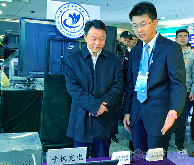 在“挑战杯”竞赛期间,共青团中央书记处书记傅振邦来到现场参观了清华大学《高性能、低成本燃料电池阴极催化剂的开发》《模拟医生操作实现人机协同的血管介入手术人工智能装置》和《软硬件联合优化的新型低功耗5G通信系统》项目展位,并对这些项目表示高度赞扬。校党委副书记过勇专程到现场看望了参赛同学,为同学们加油打气,并详细了解、指导参赛作品的准备和答辩环节。