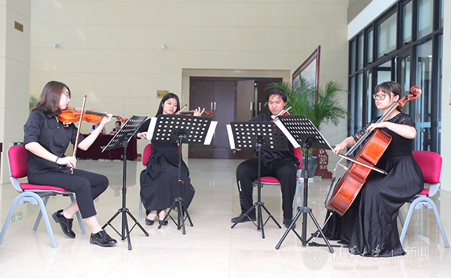 会议开始前,艺术团同学演奏《今天是你的生日,我的中国》