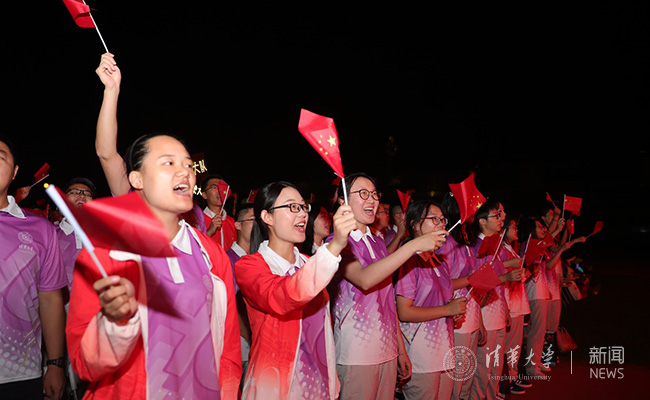晚会最后,与会校领导和主要工作人员走上舞台,全体师生起立,所有人挥动起手中的五星红旗,一起唱响《歌唱祖国》。一曲歌毕,全体师生一齐喊道“祖国万岁,清华加油!”,歌声与欢呼声响彻东大操场,映衬着明亮动人的中秋皎月,为中秋晚会画上了圆满的句号。