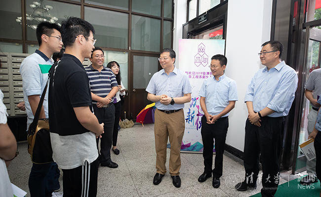在化工系迎新点,邱勇详细询问研究生招生和现场报到情况,并与新生们一一交流,倾听他们的入学感受。化工系2019级普博生王景元在化工领域工作数年后考入清华大学,他激动地说:“清华一直是我的梦想,今天我终于来了!相信在清华园里能够获得更好的学习机会和平台。”刚刚参加完暑期团校的化工系研究生新生张轩钰说:“在暑期团校聆听完老师们的讲座,我被清华的家国情怀深深打动,未来我也要通过自己的努力为国家发展贡献力量。”邱勇对同学们的到来表示热烈欢迎,他说:“化工系历史上取得了很多卓越的成就,有着优秀的文化传统,如今化工系发展到了新的阶段,要继续面向国家重大需求不断取得创新突破。清华大学不仅吸引人才,更要造就人才。未来你们还将看到学校更多更新的变化,清华将与你们共成长!”