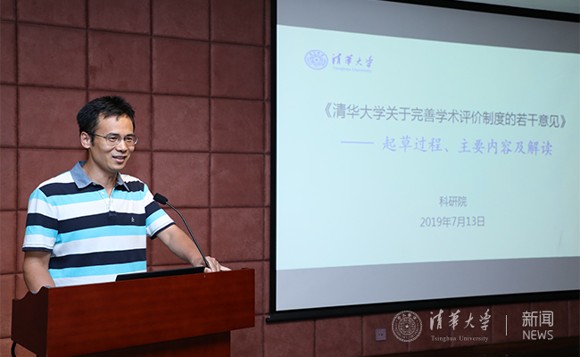 科研院项目部主任朱付元围绕《清华大学关于完善学术评价制度的若干意见》的起草过程、主要内容等作了专题报告,介绍了意见起草的背景情况、起草总体部署、工作思路等。