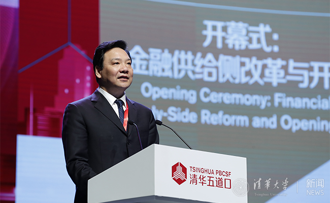 开幕式上,邱勇在致辞中表示,金融是经济的血脉,金融制度是经济社会发展中重要的基础性制度。如何贯彻落实新发展理念,如何深化金融供给侧结构性改革,是中国金融界必须回答的问题。扩大金融高水平双向开放,提升金融业全球竞争能力,提高参与国际金融治理能力,是我们必须承担的历史使命。邱勇指出,改革和开放是清华大学持续提升办学水平的必然选择。面向未来,百余年厚重的积淀和创新发展的活力给予清华人自信和力量,清华正以更加开放的姿态走向世界。清华大学将不断提升办学质量、办学品位和人才培养水平,为国家发展、人民幸福、人类文明进步作出新的更大贡献。