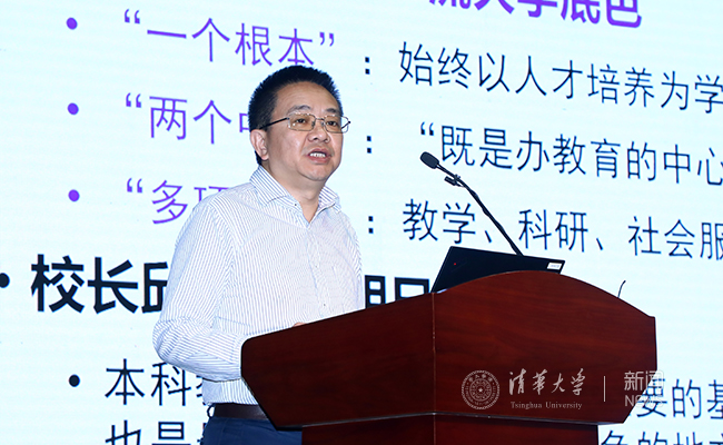 上午9点,招生信息交流会在大礼堂拉开帷幕。副校长、教务长杨斌教授在开场演讲中,拆解了“人工智能”四字中所蕴含着的清华大学人才培养理念。他围绕“人”阐述了清华大学的“三位一体”教育理念、成人成才成群、人在才先、为国育士等;围绕“工”描述了清华人以此为生、精于此道、乐此不疲的工匠精神、追求做第一等事业的境界追求;围绕“智”解读了跳出“能衡量才发展”的怪圈、重视教育价值自在的清华思考;围绕“能”刻画了一代代清华人勇于担当、积极贡献的主人翁立场以及靠谱肯干、让人信赖的风格特质。他感谢社会各界对清华一直以来的支持和帮助,并祝福各位同学得其所愿、圆梦清华。