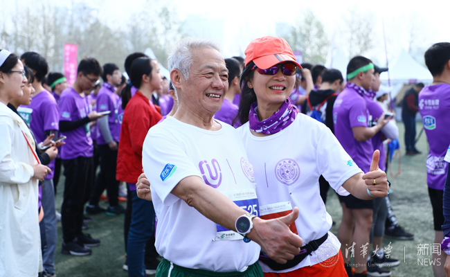 已经79岁的清华大学党委原副书记,北京电影学院党委原书记、院长王凤生老师以2小时22分跑完半马,践行了“为祖国健康工作五十年”的体育传统。生命学院施一公院士克服春季花粉过敏和前几天受伤的困难,专程返回清华园参赛。同时,工物系系主任王学武、生命学院院长王宏伟等各院系负责人也参加了比赛,带动师生师生一起在春日中感受清华体育精神。
