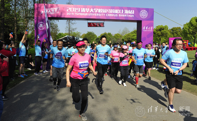 清华新闻网4月13日电(学生记者 宋亮 通讯员 李凤敏 摄影 钟汉麟 王烁祺 彭瑞轩 常志东 关晓华 美编 杨思维)4月13日上午9点,“2018-2019学年度清华大学马约翰杯校园马拉松赛”火热开赛。3000余名清华师生、校友在四月明媚的阳光里,迎着春风共同奔跑在更加自信、开放的清华园。常务副校长王希勤、校党委副书记向波涛等出席活动,并为赛事鸣枪。