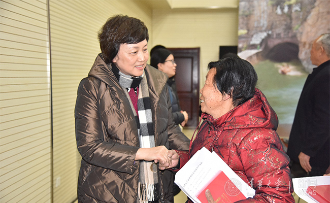 师生与红旗渠精神、扁担精神代表人物张买江、李改云、尹梅花座谈 程正雨 摄