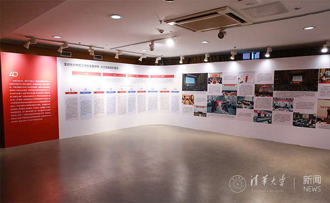 本次展览以集中反映清华大学改革开放40年的发展历程、重要举措和显著成就为主线,主体分为10大板块,将历史展与成就展相结合,分别介绍了学校在办学理念、学科建设、人才培养、科学研究、教师队伍、国际交流、学生活动、社会服务、支撑体系、党的建设等各方面的发展变化,尤其是反映了党的十八大以来深化改革、扩大开放的新进展新面貌。在10大板块之前的序厅,选取一些富有代表性的照片和档案,以图片墙和史料展的形式,简要回顾了40年的不平凡历程。