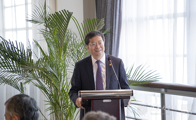 邱勇在发言中围绕“传承”与“变革”两个关键词阐释了清华的办学传统和教育理念,并详细介绍了近年来清华的改革举措和重要成果。邱勇表示,在师资队伍建设方面,清华发扬重视师资的优良传统,积极推动人事制度改革,建立了全校范围内的准聘长聘制度,吸引了一批优秀青年教师加入;在教育教学方面,以“自强不息,厚德载物”的校训和“行胜于言”的校风为基础,提出价值塑造、能力培养、知识传授“三位一体”的全新教育理念,并大力推动创新创业教育与通识教育;在科学研究方面,服务国家战略需求,集中力量攻克重大工程技术难题,同时大力推进交叉学科与前沿领域方面的研究;在国际合作方面,清华大学于2016年发布了学校历史上首个全球战略,在世界范围内推出了一系列战略性举措,促进与国外大学和相关机构的交流与合作,持续提升学校的声誉与全球影响力。
