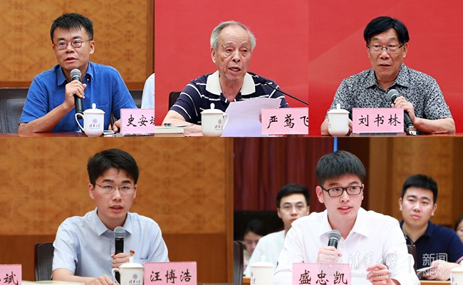 清华大学习近平新时代中国特色社会主义思想研究院和学校相关部处的负责人,征文一等奖获奖作者、优秀组织奖获奖单位负责人,青年教师领航工作站教师、马克思主义学院教师、博士生讲师团讲师、研究生党建助理等方面的代表,以及社科学院、能动系、物理系、电机系、工物系、出版社的部分基层支部党员等100余人参加会议。