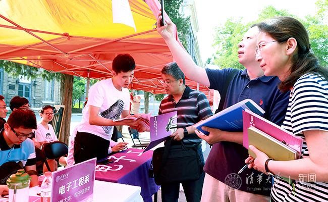 早晨7点,初夏的清华园翠色盈盈,风景如画。考生和家长陆续来到开放日现场,大礼堂周围咨询的人群络绎不绝。今年的开放日,清华大学为考生和家长准备了丰厚的信息“大礼包”。他们不仅有机会全面了解清华大学的招生政策和人才培养情况,与各大类进行面对面咨询,也可以走进开放的逸夫图书馆、人文社科图书馆、李文正图书馆、校史馆等,感悟清华大学的百年积淀,还可以通过学生艺术团的表演、学生志愿者的服务,领略清华学子的精神风貌。