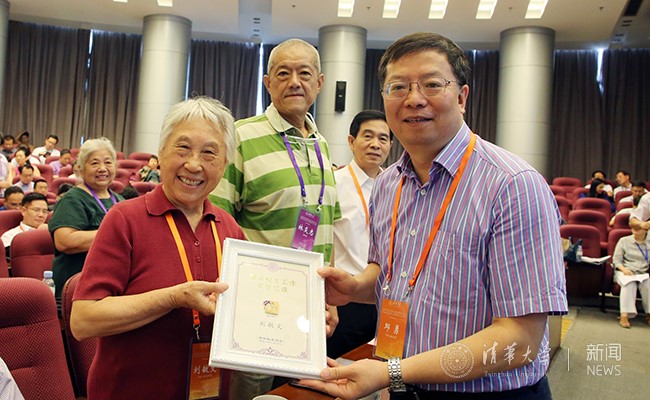 邱勇为离任理事颁发“清华校友工作荣誉奖章”。石加东 摄