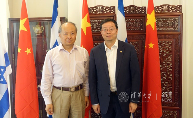 18日下午,邱勇与中国驻以色列大使詹永新在大使官邸举行会谈。邱勇介绍了清华大学国际合作情况,特别是与以色列相关大学的合作项目进展。詹永新高度评价了清华大学在中以两国高等教育和科技创新方面的交流合作所做出的贡献,表示会全力支持清华大学在以色列的相关工作。