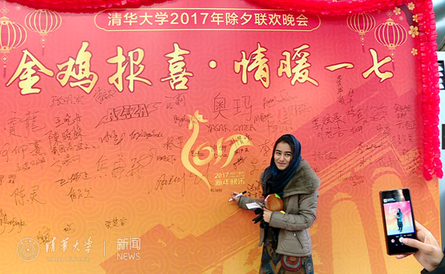 清华大学2017年除夕联欢晚会由学生部承办,党办校办、研工部、团委、总务办、饮食中心、物业中心、保卫部、教务处、国际处及软件学院、热能系等部门院系负责人一同看望留校学生并参加活动。