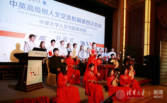 与会嘉宾共同欣赏了由清华大学艺术团、英国留学生代表共同表演的中文名曲《茉莉花》,观看了清华、复旦分别制作的宣传片——“架起东西融会的文化之桥”和“交流”。