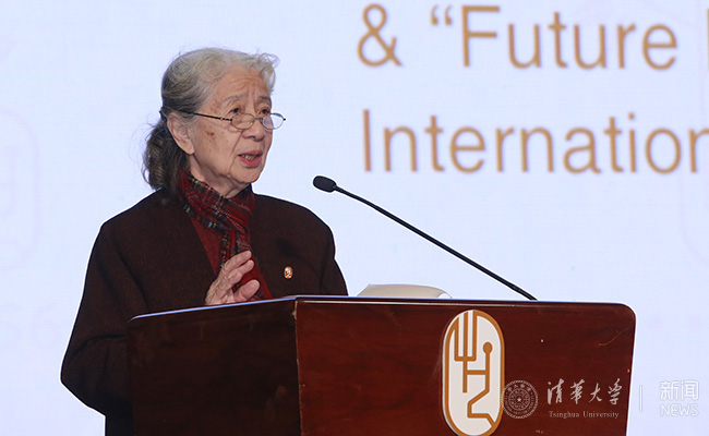 原中央工艺美术学院院长常沙娜回顾了学院初创阶段的故事和发展历程,缅怀了学院创办者和前辈大师,并引用了学院创建者之一庞薰琹先生的诗作《光华路》,鼓励美术学院的老师和同学们奋发向前。