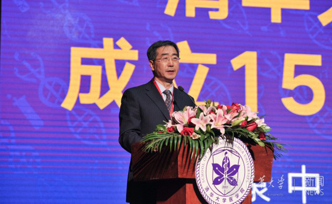 姜胜耀代表学校向医学院全体师生和海内外校友表示祝贺。他说,医学院15年的发展实现了阶段性的的发展目标,成效显著,值得肯定。习近平总书记在全国卫生与健康大会上强调,健康是促进人的全面发展的必然要求,是经济社会发展的基础条件,是民族昌盛国家富强的重要标志,也是广大人民群众的共同追求。面向“健康中国”的国家战略,发展先进健康科技,培养领军医学人才,提升人民健康水平,是清华医学的历史使命。