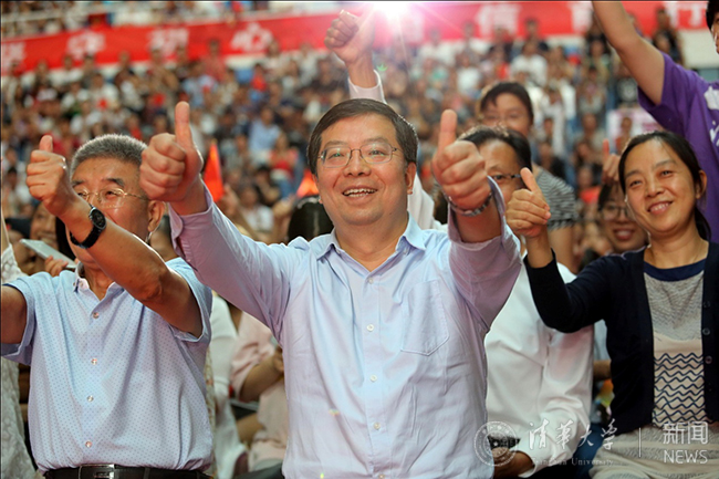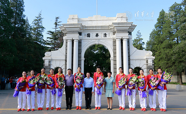 清华大学校长邱勇、校党委书记陈旭一行专门到二校门前迎接女排姑娘,传达清华人对中国女排的喜爱之情。