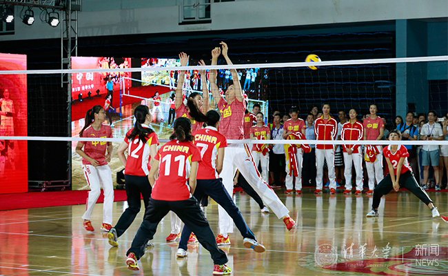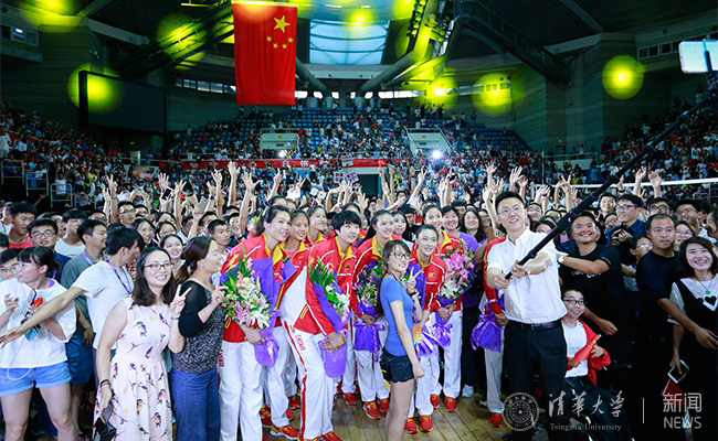 清华新闻网9月6日电(记者 李 婧)9月5日下午,“自强时代,自信中国——中国女排清华行”活动在综合体育馆举行。从里约奥运会载誉而归的12名中国女排队员亮相清华园,走进清华最美丽的季节,与师生近距离交流互动。