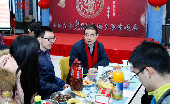清华大学2016年除夕联欢晚会由校团委承办,党办校办、学生部、研工部、总务办、饮食中心、物业中心、保卫部、教务处、国际处等部门相关负责人及人文学院、五道口金融学院等部分院系负责人一同看望留校学生并参加活动。