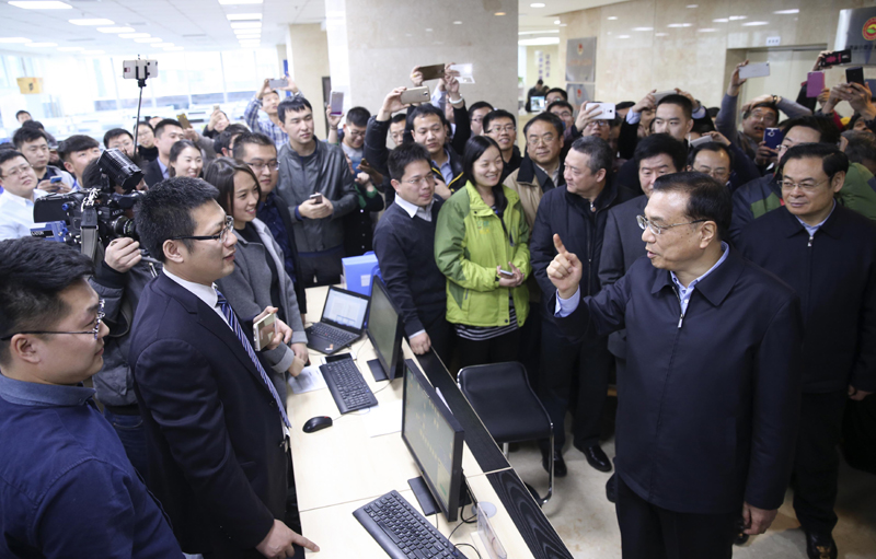 1月5日,李克强考察了清华控股成员企业清控科创旗下科创慧谷(太原)创新基地,这里聚集了200多家高新技术和众创小企业。李克强走进三合盛节能技术服务公司,了解他们的技术创新点和市场应用情况。在众创空间,他走到一个个创业平台,兴致勃勃地观看创意产品,勉励创客们大胆往前闯,用自己的新点子打造新产业。李克强说,中国市场潜力巨大、预期向好,新的发展动能可以有效带动扩大就业,为传统动能改造提升创造良好条件,其源泉正是来自于创新驱动,来自于大众创业万众创新的蓬勃开展。政府要提供更有效的支持和便捷服务,不断释放亿万群众创业创新的智慧和激情。