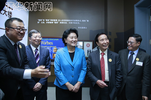 随后,刘延东来到刚刚落成启用的清华大学李兆基科技大楼,参观了李兆基贡献纪念展室,并会见了恒基兆业地产集团主席李兆基先生及亲友一行。国务院副秘书长江小涓、中央统战部副部长林智敏、教育部副部长林蕙青、香港中联办副主任殷晓静、清华大学校长邱勇、校党委书记陈旭、副校长杨斌、校党委副书记李一兵参加会见。