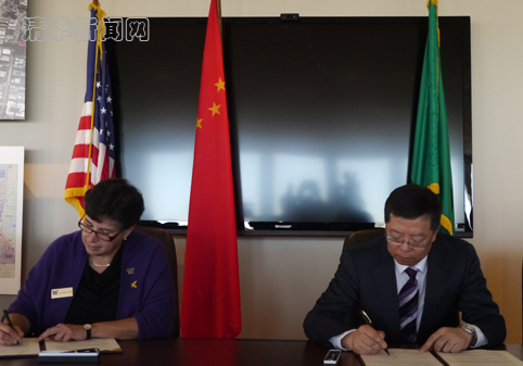 美国当地时间2015年9月22日,北京时间9月23日,清华大学、四川省、华盛顿大学、华盛顿州“2+2”合作协议签署仪式在华盛顿州西雅图举行。清华大学校长邱勇、华盛顿大学校长安娜·玛丽·科斯(Ana Mari Cauce)、四川省委书记王东明、华盛顿州州长杰伊·英斯利(Jay Inslee)共同见证和签署了协议。清华大学副校长杨斌出席了签约仪式。