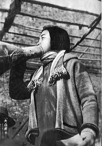 1935年12月9日,清华学生游行队伍被阻于西直门外,同学们就地进行抗日救亡宣传,讲演者为清华大学学生陆璀。