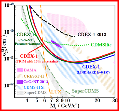 11月11日,由清华大学主导,四川大学、南开大学、中国原子能科学研究院和雅砻江流域水电开发有限公司等单位共同参与的中国暗物质实验(China Dark matter Experiment,CDEX)合作组最新的研究成果在国际著名科学杂志《物理评论D》“快报”栏目(Physical Review D “Rapid Communication”)发表。这项研究成果获得了点电极高纯锗探测器在10GeV以下能区里最灵敏的暗物质实验结果,利用相同的探测技术确定性地排除了美国CoGeNT实验组几年前给出的暗物质存在区域,为更好地理解过去多年国际上多个实验组发布的相互矛盾的暗物质实验结果提供了更新的、灵敏度更高的实验证据。