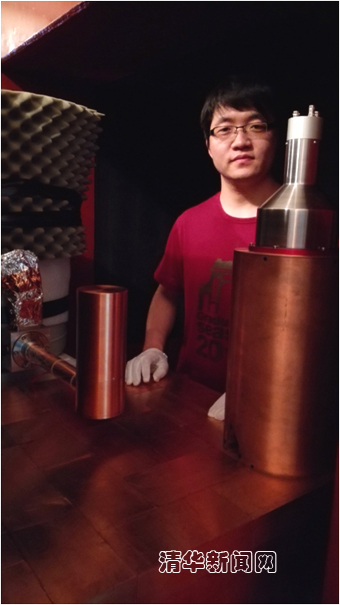 图为参加项目研究的清华学生在安装调试高纯锗探测器。