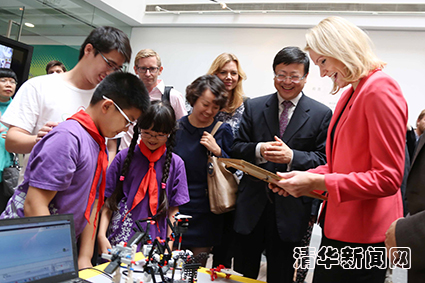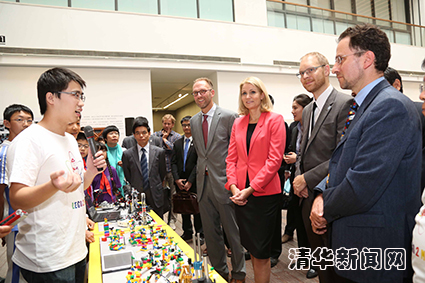 清华新闻网9月12日电 (记者 李 含)9月11日,在华访问的丹麦首相赫勒•托宁-施密特来到清华大学,参观了美术学院终身学习实验室。乐高集团首席执行官兼总裁乔根•维格•克努德斯托普陪同来访。教育部副部长杜占元、清华大学校长陈吉宁陪同参观。清华大学校长助理、研究生院院长杨斌参加了有关活动。
