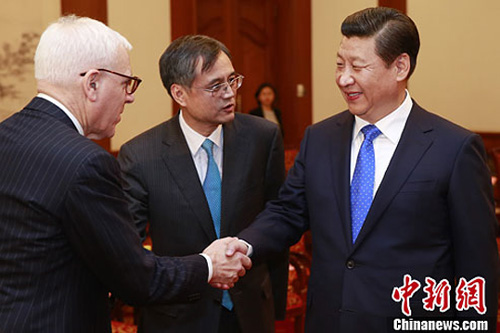 习近平同委员们一一握手,赞赏他们为促进中国经济管理教育事业和中外交流合作作出的积极贡献。习近平表示,你们作为世界知名企业家,对世界经济形势和中国经济发展有着深刻见解,我愿意听取你们的真知灼见。清华大学经济管理学院顾问委员会主席、凯雷集团联合创始人兼董事总经理大卫·鲁宾斯坦(David M. Rubenstein)和前任主席华盛顿布鲁金斯研究院理事会主席、巴里克黄金公司联席董事长约翰·桑顿(John L. Thornton)代表委员们发言。大卫·鲁宾斯坦在发言中说,委员们都很关注中国即将召开的十八届三中全会,它不仅影响中国经济,也会影响世界经济。约翰·桑顿说,清华大学在中国有着特殊地位,希望清华大学和清华经管学院的教育改革经验能对中国教育的改革和发展有更大影响。两位委员感谢习近平主席的会见,介绍了顾问委员会的工作情况。他们表示中国取得巨大发展成就,有力促进了世界经济增长。他们对中国未来发展充满信心,对进一步扩大在华业务充满期待,将继续为中国教育事业和经济发展做出积极努力。