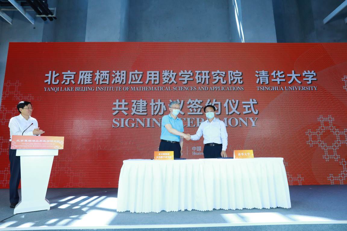清华新闻网6月14日电(记者 李晨晖 摄影 石加东)6月12日,由北京市政府支持,北京市科委和怀柔区委区政府推动并着力建设,依托清华大学、中国科学院等数学学科优势资源单位,委托国际数学大师、清华大学数学科学中心主任丘成桐院士牵头筹建的新型研发机构——北京雁栖湖应用数学研究院(以下简称“北京应用数学院”)正式成立。清华大学与新成立的北京应用数学院签署合作共建协议。