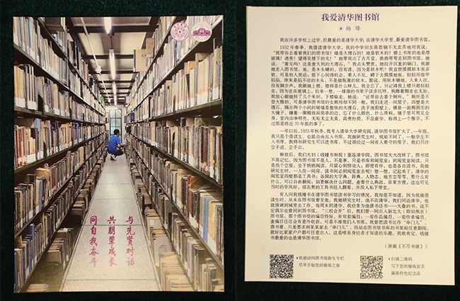 为了让新生在大学期间勤于读书、善于思考,去年起,寄给新生的录取信封中特意加入了来自清华大学图书馆的定制读书卡。扫描卡片上的二维码,同学们就可以访问中英文版本的图书馆新生专栏,阅读读者手册,开通借书权限。写下自己大学四年的图书馆“修炼宣言”,还有机会获得图书馆准备的特色纪念品。通过这张卡片,还未入校,新生们就可以开始规划自己“横扫图书馆”的大学生活了。