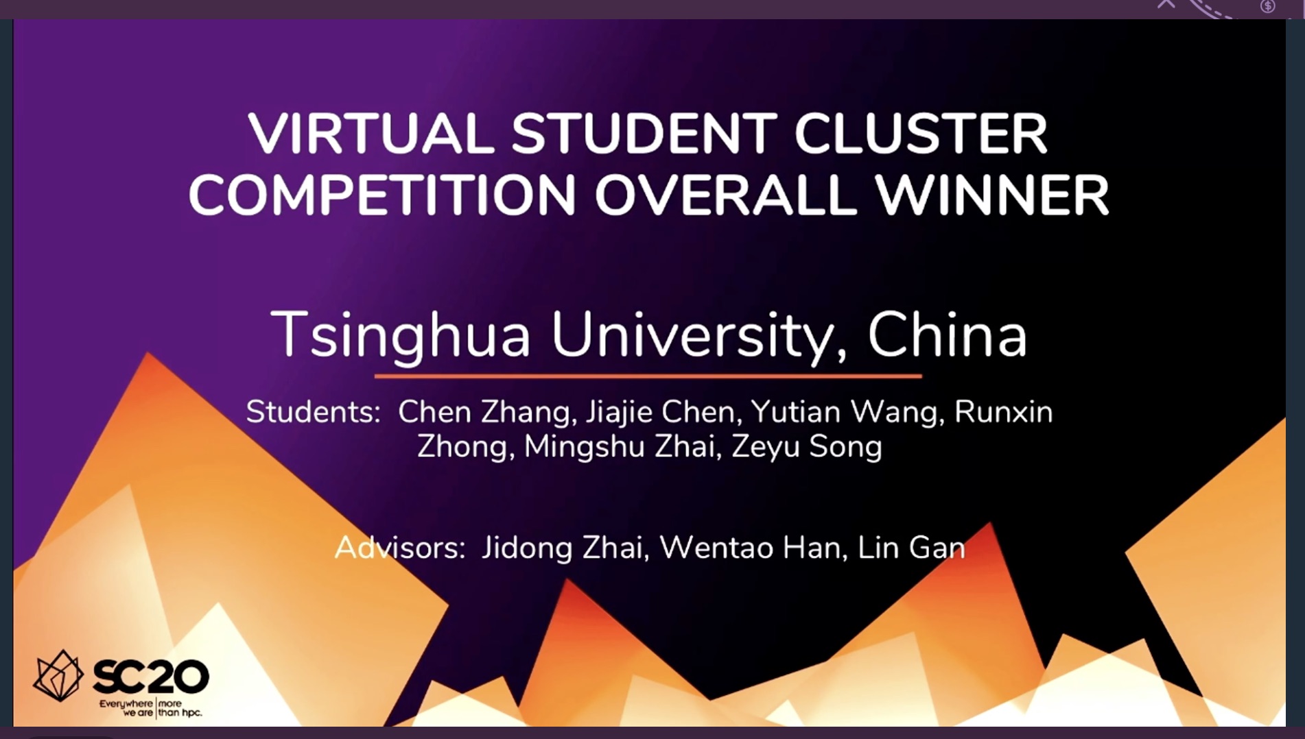 清华新闻网11月23日电 11月20日凌晨,2020国际大学生超级计算机竞赛(SC20)总决赛结果公布,由清华大学计算机系组建的学生超算团队夺得总冠军,同时取得LINPACK基准测试最高性能奖,获得双料冠军。这也是清华在SC竞赛中首次夺得三连冠。