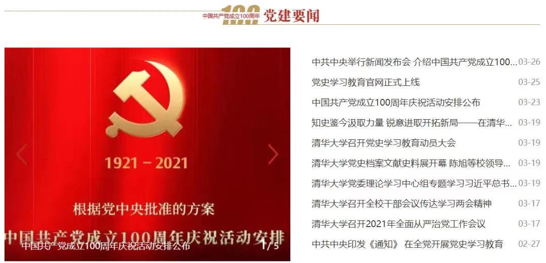 清华大学庆祝中国共产党成立100周年暨党史学习教育专题网站网址: