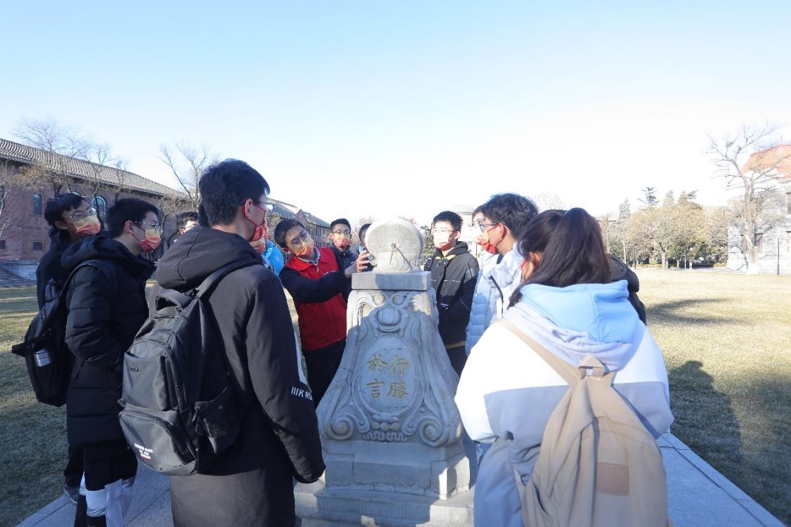 从清华第一个中共支部诞生地——三院遗址出发,途经清华英烈纪念碑、闻一多先生塑像等一系列红色建筑、纪念物、雕像,同学们在一处处红色风物前留下青春的足迹,也将一个个动人的红色故事铭刻在心。