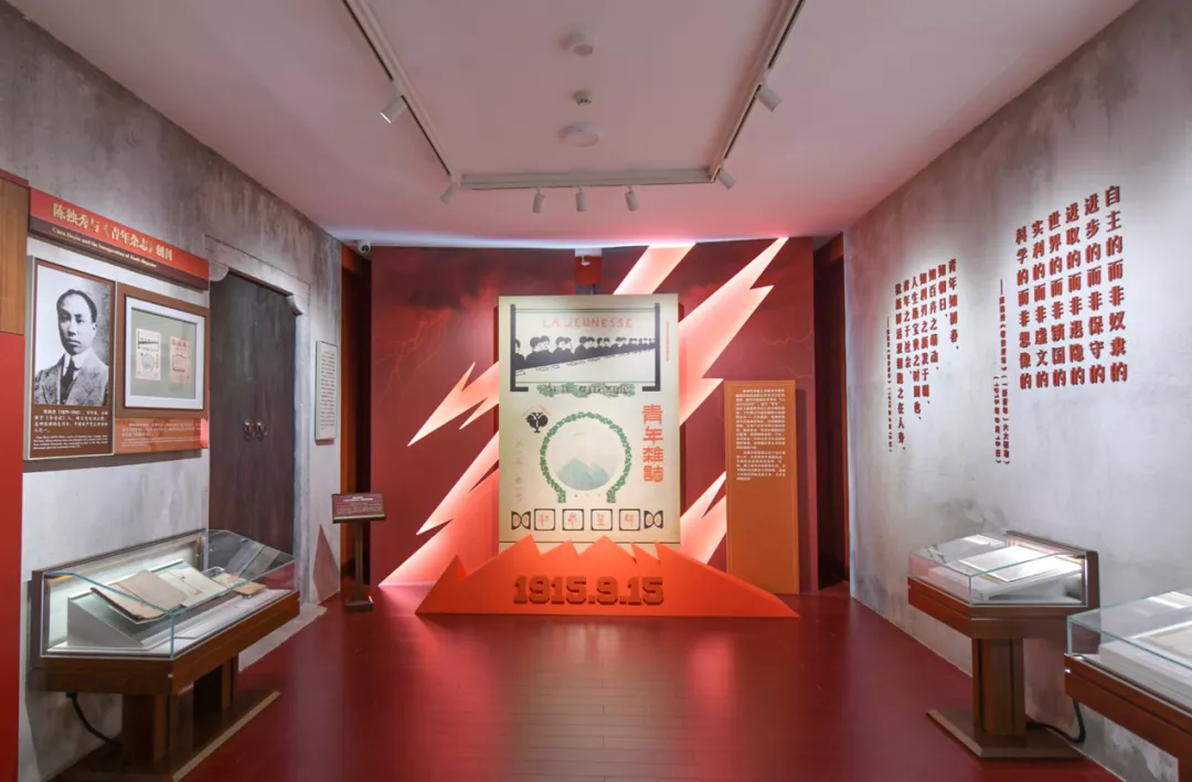 清华大学美术学院展示艺术研究所所长洪麦恩主持设计北大红楼“光辉伟业红色序章”主题展,图为“新文化运动发端”展厅