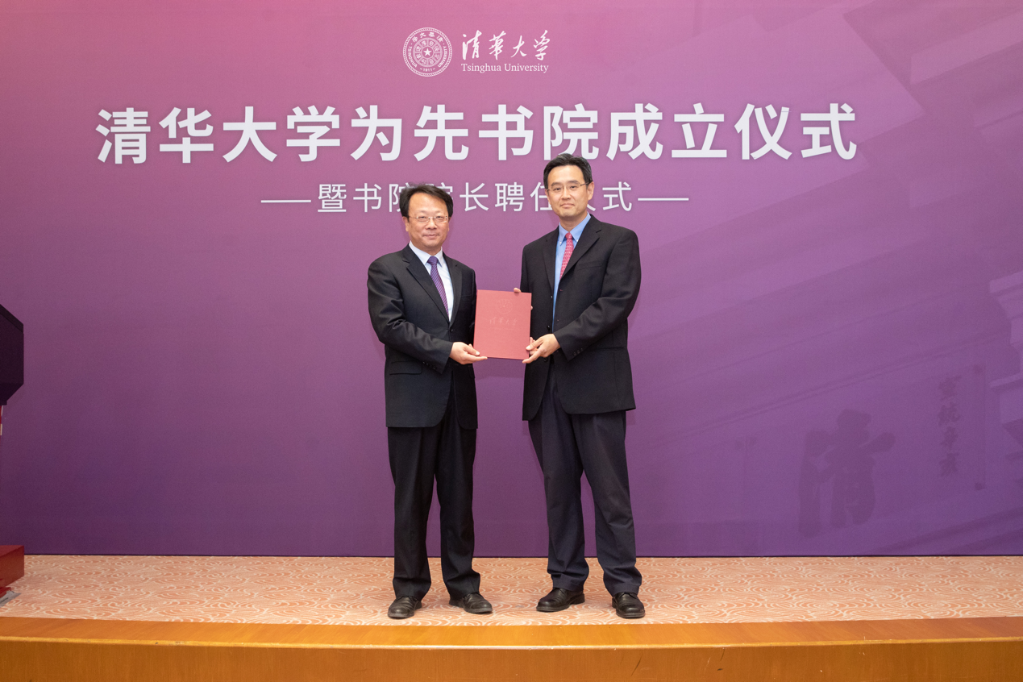 杨斌宣读了为先书院成立的决定。为先书院按照学校实体机构运行,聘请清华大学教务处处长、精密仪器系教授欧阳证担任首任院长。校领导王希勤、杨斌、过勇、彭刚,为先书院院长欧阳证、副院长王秀梅共同为书院揭牌。随后,王希勤为欧阳证颁发书院院长聘书。