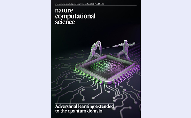 《自然·计算科学》封面:量子对抗学习示意图