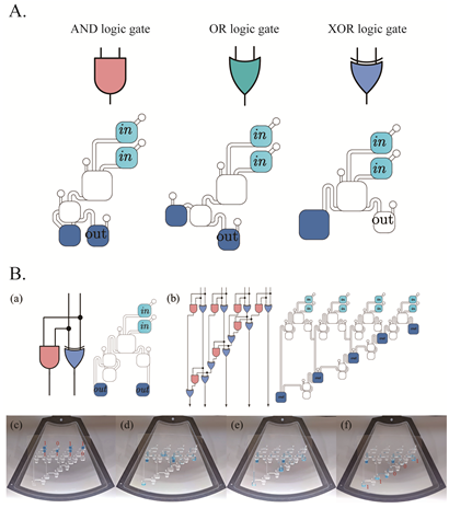 清华新闻网2月1日电 微流控(Microfluidics)指的是使用微管道(尺寸为数十到数百微米)处理或操纵微小流体(体积为纳升到阿升)的系统所涉及的科学和技术,是一门涉及化学、流体物理、微电子、新材料、生物学和生物医学工程的新兴交叉学科。微流控的重要特征之一是微尺度环境下具有独特的流体性质,如层流和液滴等。借助这些独特的流体现象,微流控可以实现一系列常规方法所难以完成的微加工和微操作。过去十年,通过将最多达数千个阀门和泵集成到单个芯片平台上,实现高度多路复用的自动化复杂性液滴控制系统的研究爆炸式增长。传统的方法大多使用串行控制来处理单个液滴,这种异步的控制方法不能高效和稳定地控制微流体的存储路径或运动方位。其次,作为流体逻辑元件的微阀,通常需要通过施加包括外部压力、加热、电场或磁场来实现功能。在此背景下,缩小阀门及其驱动系统非常困难,对制造工艺提出了巨大的挑战。
