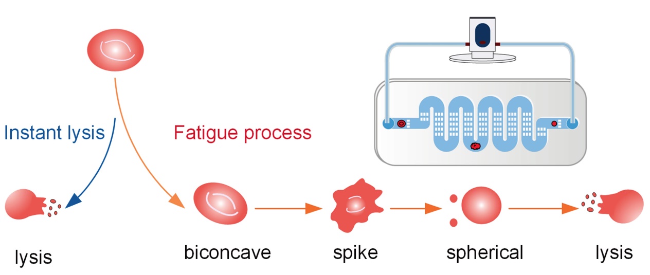该研究揭示了红细胞在低应力高频率挤压诱导下疲劳溶血的生理机制,对于深入理解溶血现象,以及改进血泵、人工瓣膜等植介入器械的设计具有重要作用。