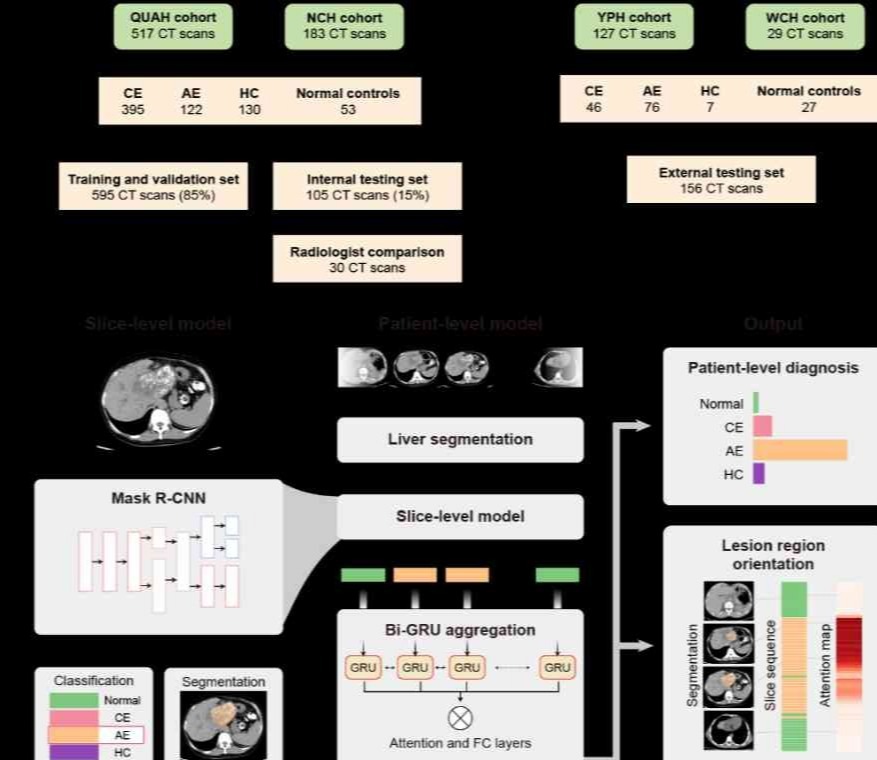 清华新闻网10月7日电 近日,清华大学自动化系、北京信息科学与技术国家研究中心张学工教授团队与神经调控国家工程研究中心团队、青海大学附属医院樊海宁教授团队等合作开发了名为EDAM的包虫病辅助诊断AI系统,用普通平扫CT图像实现包虫病的自动检测和分型,为包虫病高发且医生资源短缺的西部地区提供了筛查包虫病的AI诊断新技术,助力彻底解决长期困扰高原牧区的包虫病筛查难题。