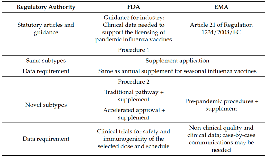 据此,清华大学药学院杨悦课题组在总结了流感疫苗研发(R&D)关键挑战的基础上,基于全球视角对新型流感疫苗的法规指南、审批路径、评价标准和监管科学现状等进行了系统分析,并针对流感病毒高变异度和季节性疫苗年度更新特征,研究全球监管机构对于流感疫苗审批上市的加速路径和紧急程序。通过整体性比较典型国家的流感疫苗监管框架和流程,本研究发现我国在季节性流感疫苗的年度更新程序以及大流行性流感疫苗的事前许可和毒株变更程序等关键领域存在监管政策空白,建议我国应进一步制定相关法规指南,逐步推出适应性的路径和程序,以指导流感疫苗的加速上市,并支持及时有效的流感大流行应对。