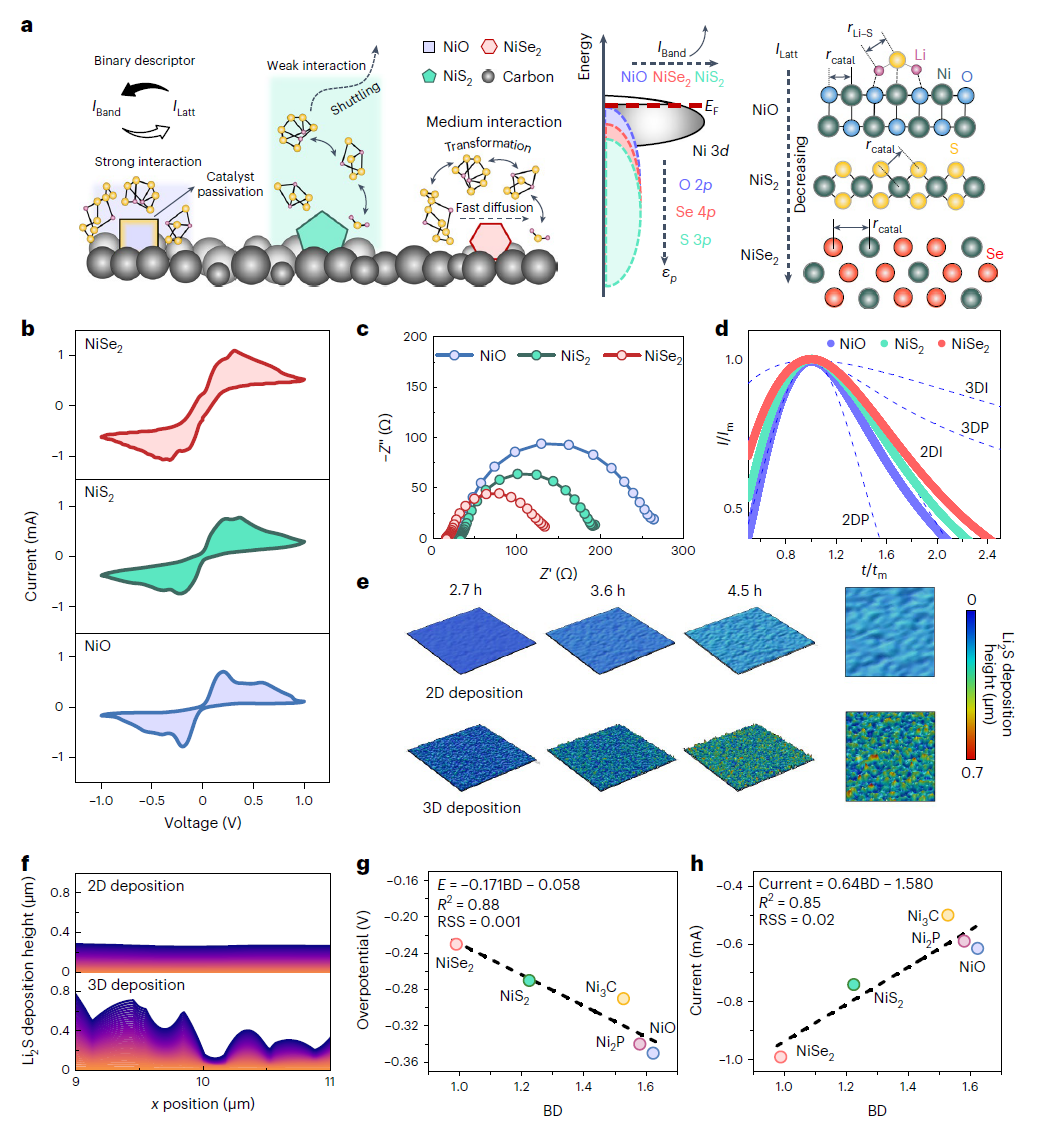 相关成果近日以“机器学习辅助设计二元描述符以破译硫反应动力学的电子和结构效应”(Machine-learning-assisted design of a binary descriptor to decipher electronic and structural effects on sulfur reduction kinetics)为题发表在《自然·催化》(Nature Catalysis)上。