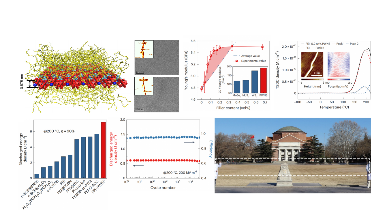 该工作以“200度下兼具高能量密度和高循环稳定性的卷对卷生产聚合物-亚纳米片复合材料”(Roll-to-roll fabricated polymer composites filled with subnanosheets exhibiting high energy density and cyclic stability at 200 ℃)”为题发表于《自然·能源》(Nature Energy)期刊上。