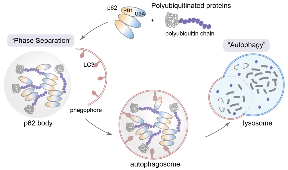 图1.p62降解凝聚体介导的自噬降解过程