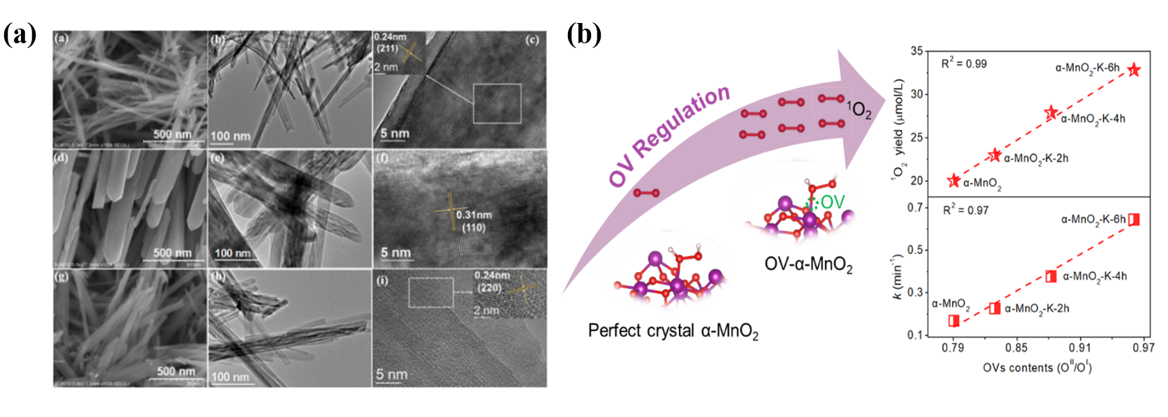 图1.α-MnO2的氧空位丰度调控实现定向生成1O2以高效降解土霉素