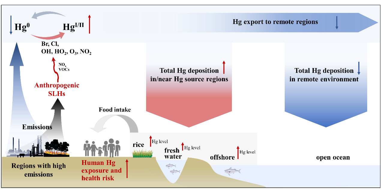 近日,清华大学深圳国际研究生院环境与生态研究院付晓副教授团队与合作者耦合全球短寿命卤素人为源排放清单、大气化学传输模型、汞暴露健康风险评估模型等多领域研究方法和数据,评估了短寿命卤素人为源排放对全球大气Hg氧化、沉降及其健康效应的影响。研究结果表明,短寿命卤素人为源排放加快了大气Hg的氧化,增加了Hg排放源区周边陆地及近海海域(也是水稻、鱼类和海产品等的主要产区)的Hg沉降,进而增加了Hg排放源区的Hg暴露和健康风险,因此需要更严格的控制本地区的Hg和短寿命卤素排放。研究进一步强调了将短寿命卤素人为源排放纳入Hg评估模型系统对于准确理解大气Hg循环及Hg健康效应的重要性。